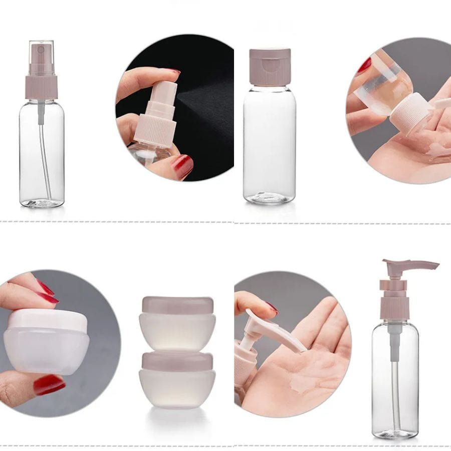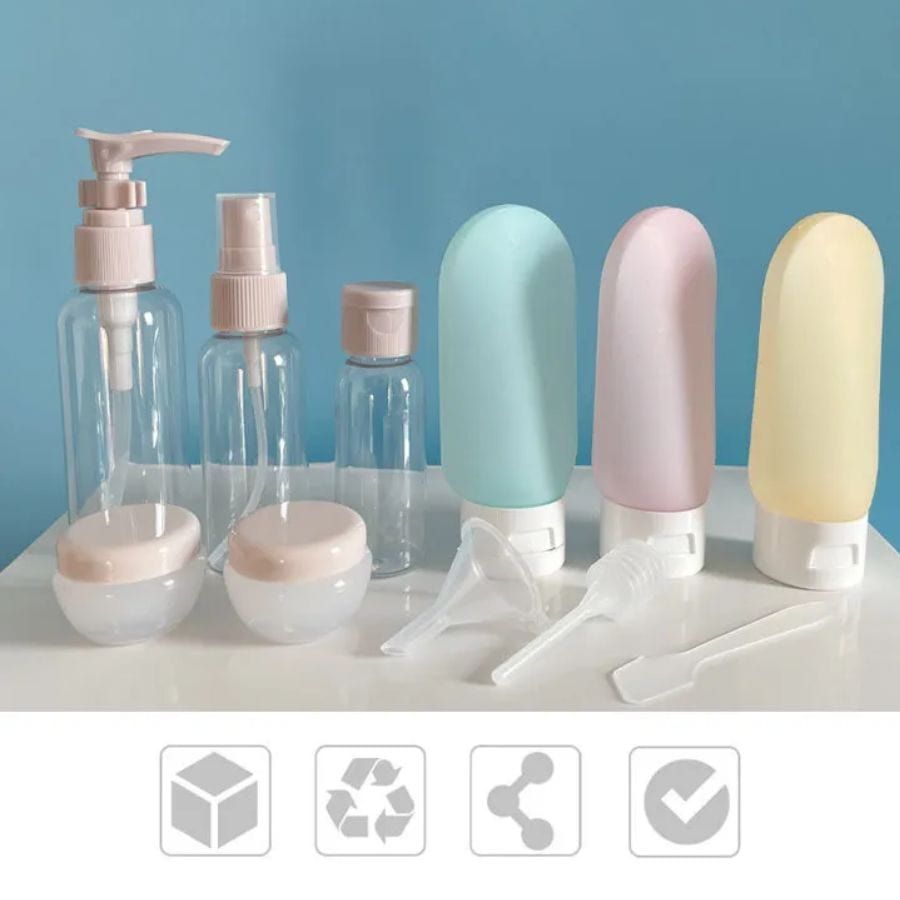 Fabriqué à partir de bouteilles sans BPA en PET, ce kit assure une utilisation durable et sécurisée. Les bouchons anti-fuite testés garantissent que vous pouvez l’emporter en toute tranquillité, sans craindre les désagréments liés aux fuites dans vos bagages.
