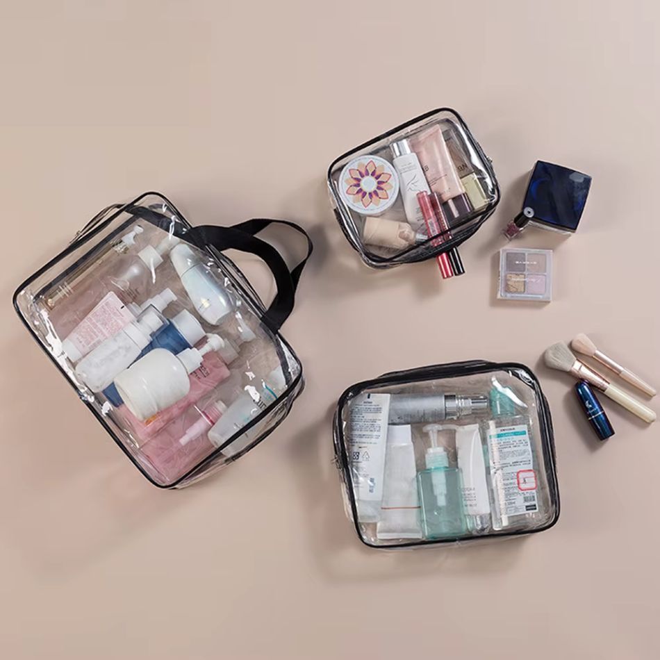 Composé de trois tailles complémentaires, ce set de trousses de toilette transparentes vous aide à trier vos liquides, maquillages et accessoires. Sa matière résistante aux éclaboussures et facile à nettoyer est idéale pour un usage intensif, que ce soit en voyage ou pour une routine quotidienne.