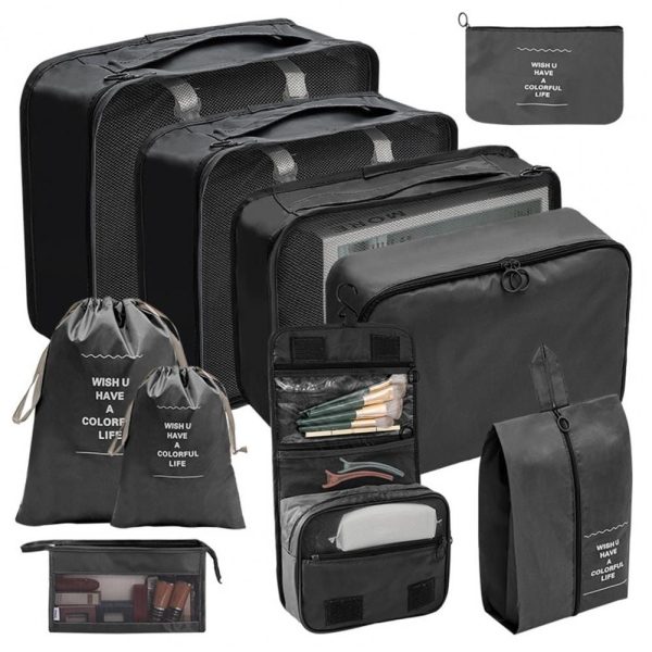 Organisateurs De Valise Set De 10 Pochettes Noir : simplifiez vos voyages avec style.