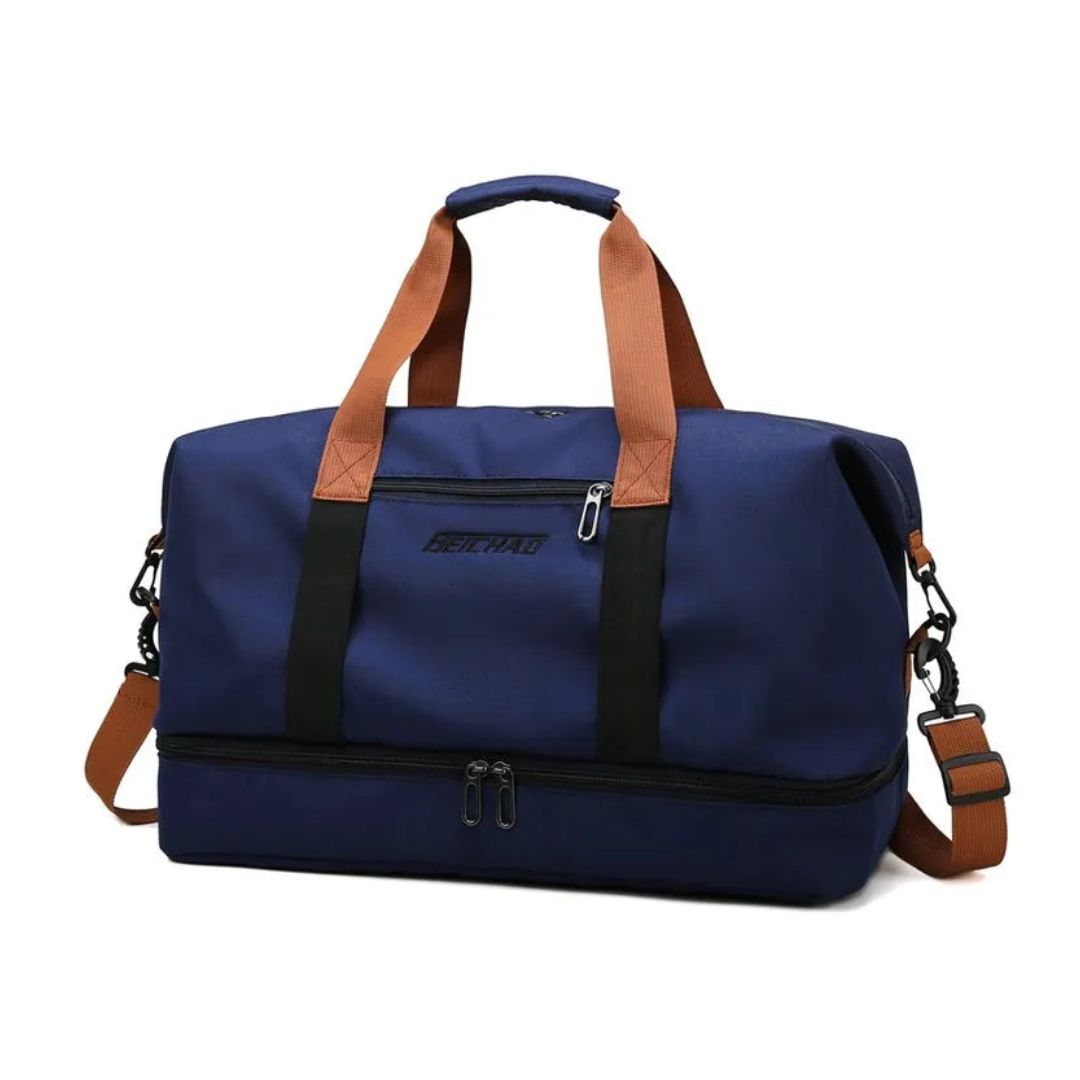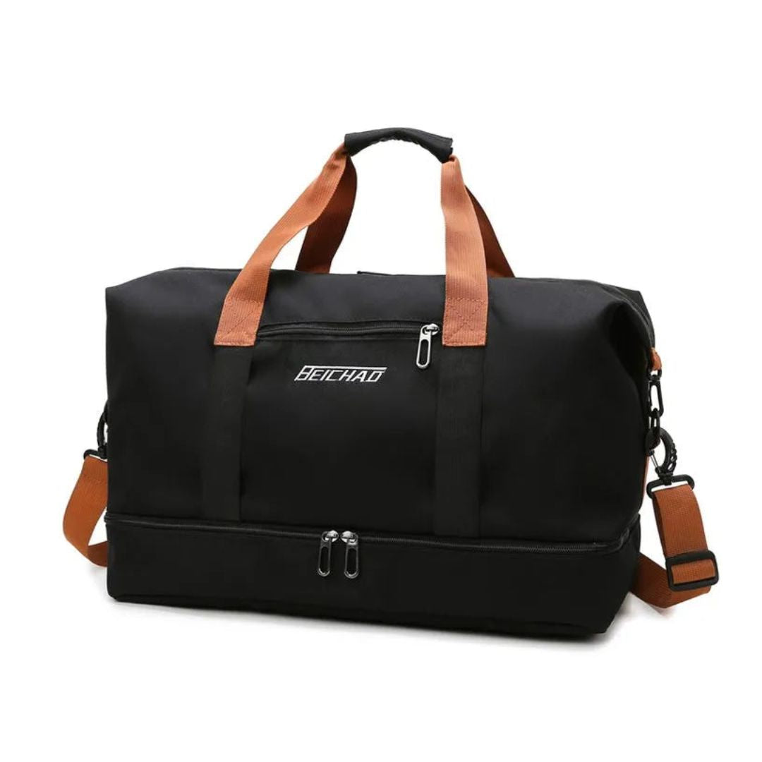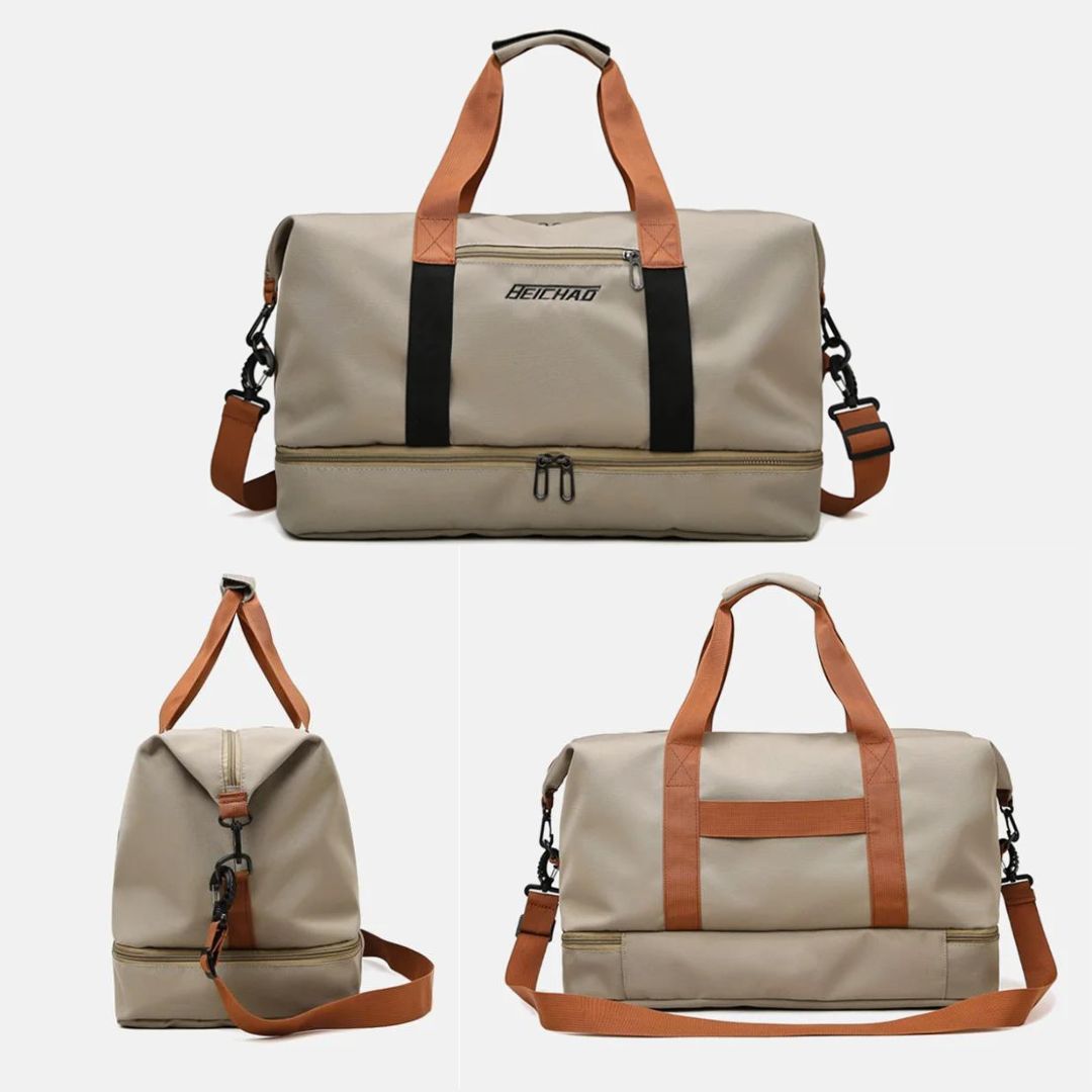 - Un compartiment double-fond idéal pour séparer les chaussures ou les vêtements usagés.