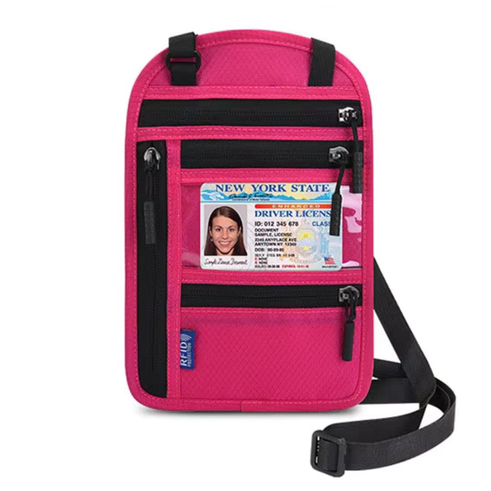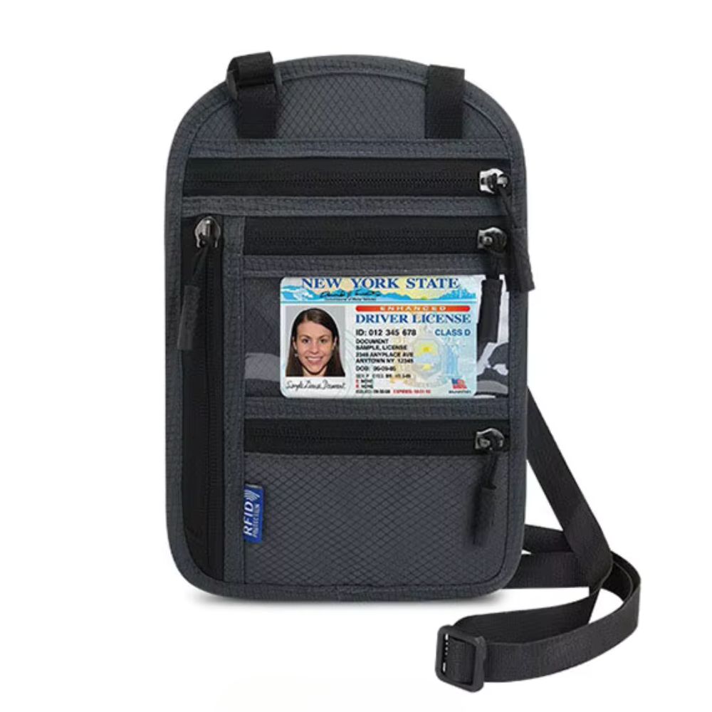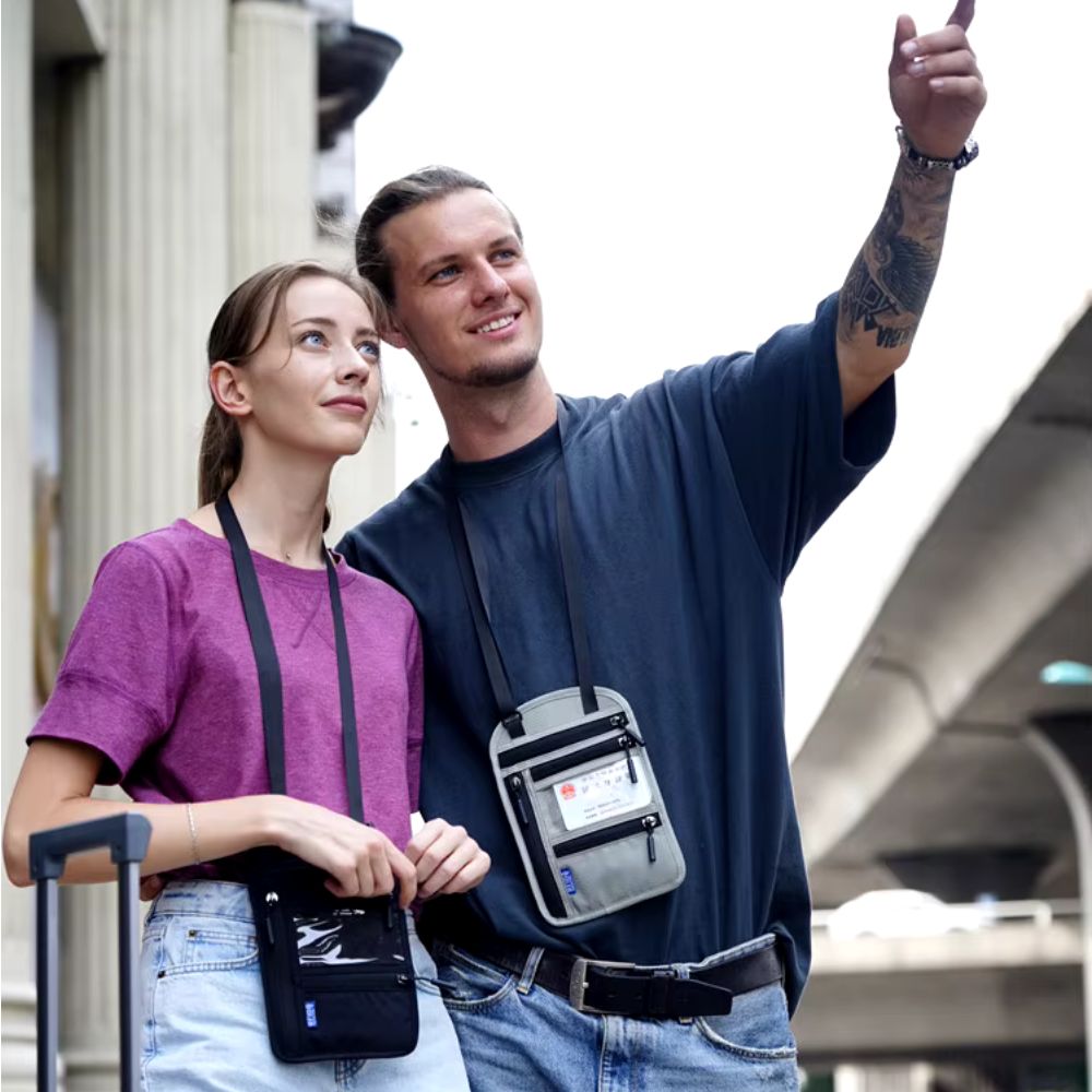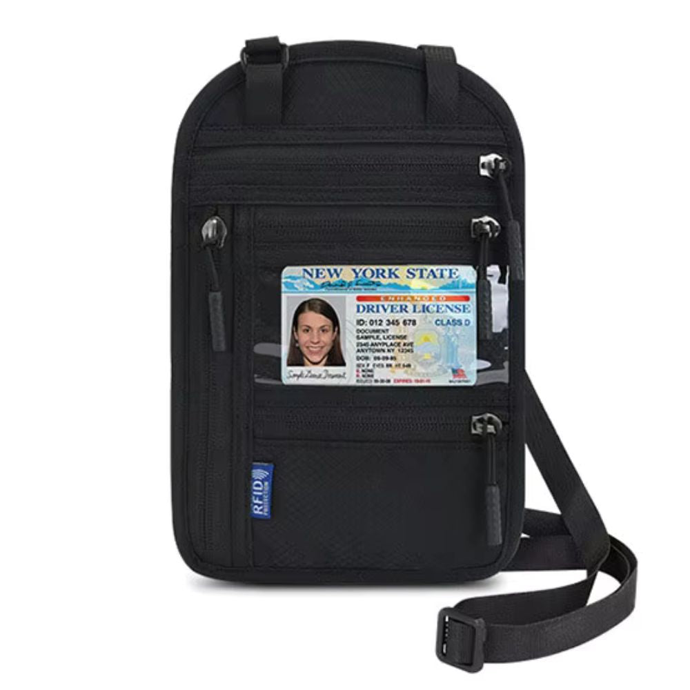 Avec sa conception astucieuse, cette pochette offre plusieurs compartiments zippés pour un rangement efficace de vos papiers d’identité, permis de conduire et autres essentiels de voyage. Sa face avant transparente permet un accès rapide aux documents fréquemment utilisés, tandis que le tour de cou réglable assure un port confortable tout au long de la journée.