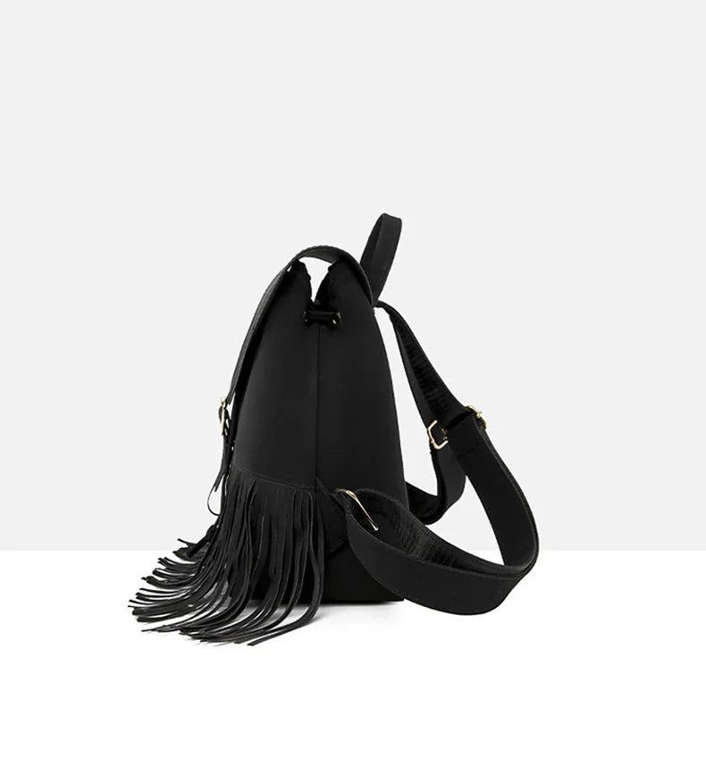 Ce sac à dos vintage à franges vous fera ressentir une sensation de confiance et de liberté. Vous êtes organisée, légère, et votre silhouette se sublime grâce au mouvement des franges qui ajoutent une dimension dynamique à votre look.