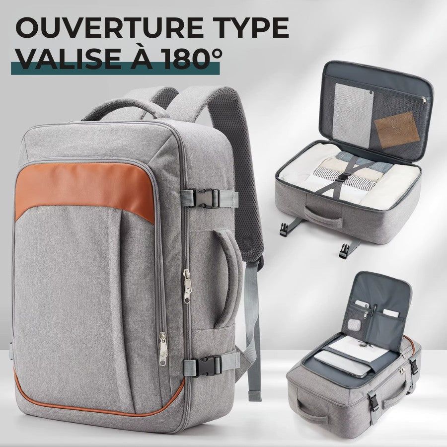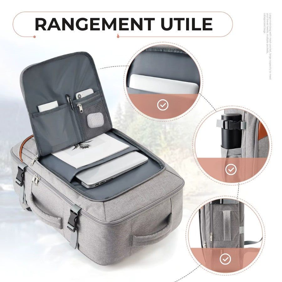 Ce sac à dos de voyage bagage cabine a été pensé pour s’adapter à tous vos besoins, que vous partiez pour un week-end improvisé de 48h ou pour un déplacement professionnel. Sa grande ouverture à 180° permet de l’utiliser comme une valise traditionnelle, tout en profitant de la liberté et de la légèreté d’un sac à dos. Chaque compartiment est étudié pour accueillir vos vêtements, votre ordinateur portable, vos documents ou encore vos accessoires de voyage, afin de voyager sans rien oublier.