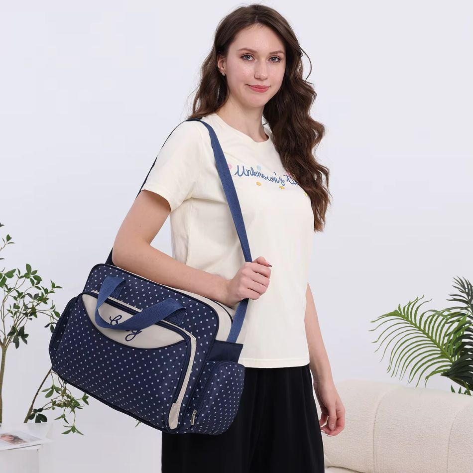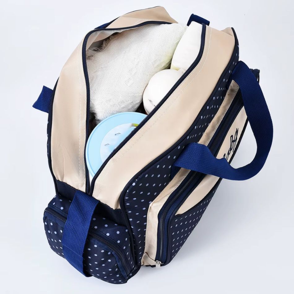 Sac à langer à pois avec bandoulière et multiples compartiments