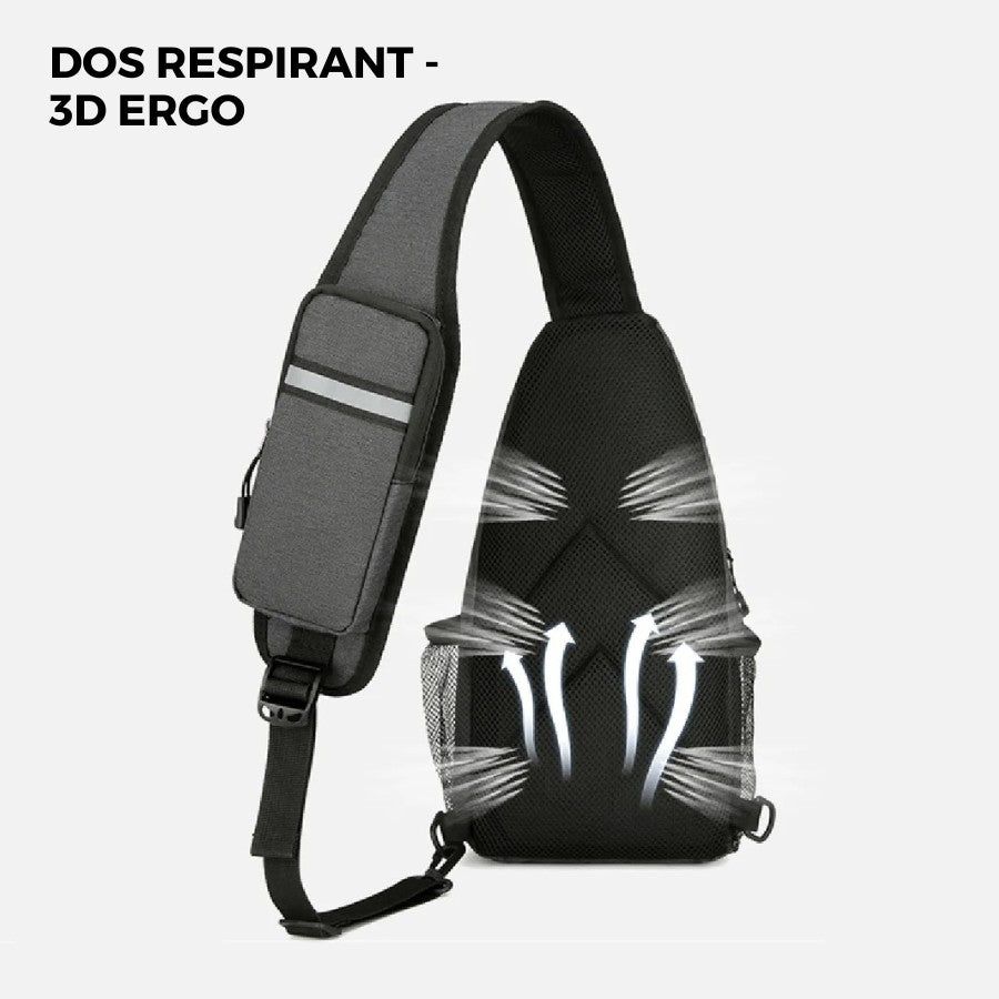 Doté d’une poche principale spacieuse, de multiples compartiments zippés et de poches latérales en filet, ce sac de poitrine vous permet de ranger votre passeport, vos écouteurs, portefeuille et clés sans effort. Son dos 3D ergonomique et respirant garantit un port confortable même durant de longues heures de marche. Profitez aussi d’une ouverture extérieure pour écouteurs : pratique pour écouter votre musique ou prendre des appels sans sortir votre mobile !