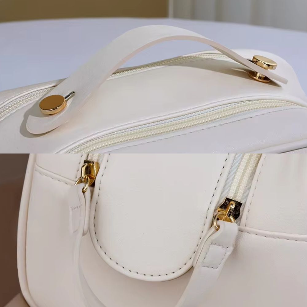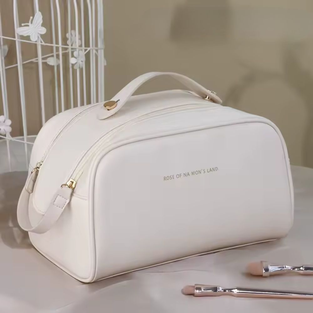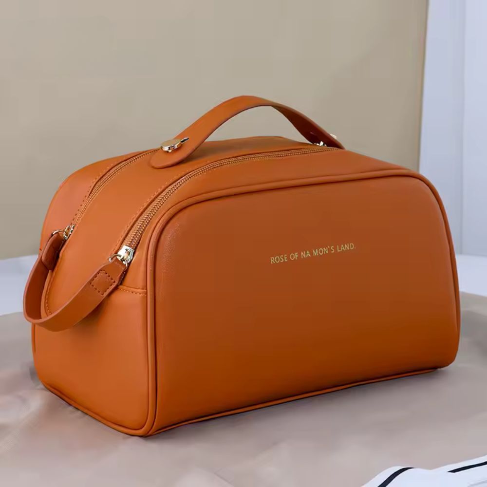 Ce sac de toilette se distingue par son design élégant, conçu pour les voyageuses modernes. Son espace intérieur généreux permet de ranger tous vos produits de beauté et de soins personnels, tout en s’adaptant à tous types de voyages, qu’il s’agisse d’un court séjour d’affaires ou de vacances prolongées.