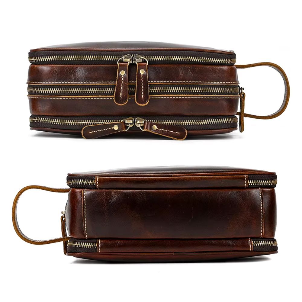 Cette trousse de toilette en cuir pour femme se distingue par sa conception moderne et fonctionnelle. Avec ses belles finitions, elle est dotée d’une doublure en tissu résistant et de fermetures éclair robustes. L’organisation intérieure est ingénieuse, permettant de ranger facilement vos produits de beauté et accessoires. Cela rend chaque usage agréable, sans compromis sur le style.