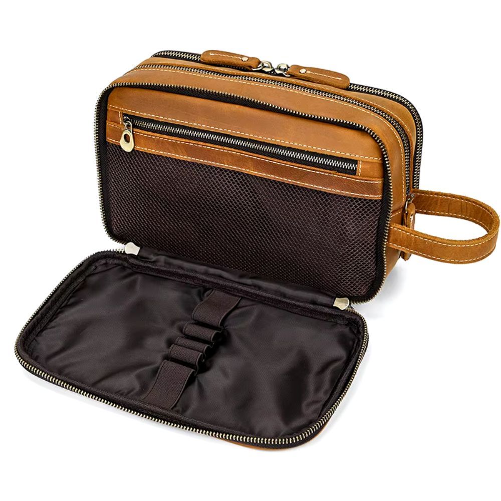 Une trousse de toilette en cuir résolument moderne
