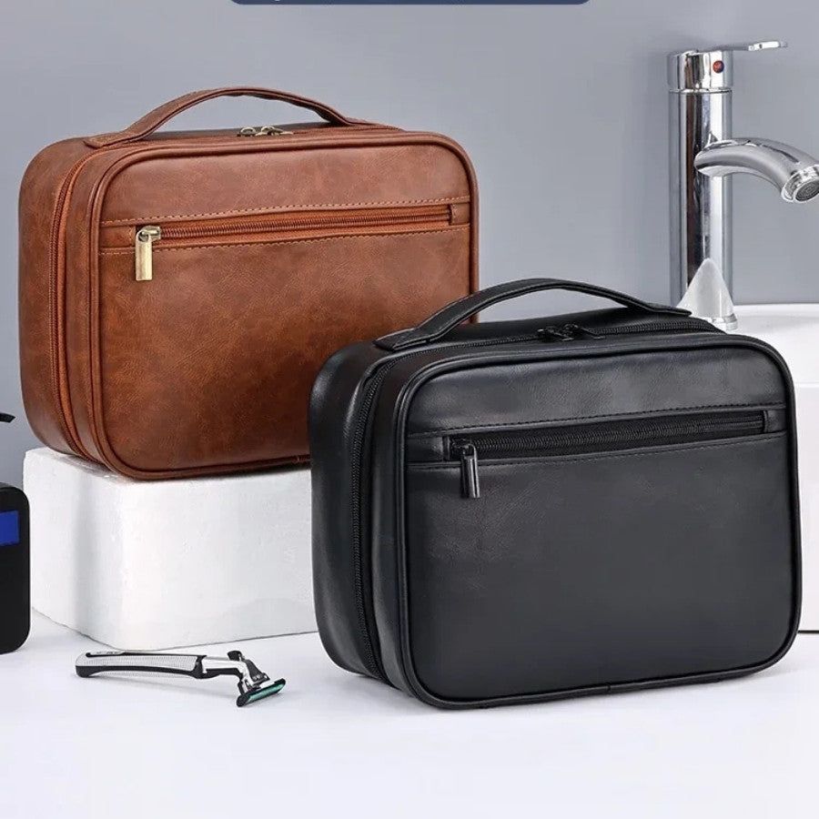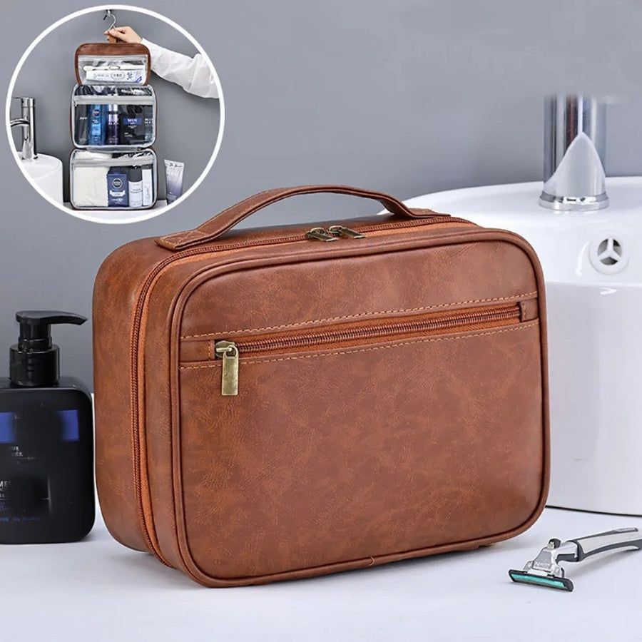 Optez pour l’alliance parfaite de l’élégance et de la fonctionnalité avec notre trousse de toilette homme avec crochet de suspension. Conçue pour accompagner chaque déplacement, cette trousse de voyage masculine se démarque par son design sobre, son aspect cuir raffiné et sa capacité à garder tous vos accessoires de toilette parfaitement organisés. Grâce à son crochet intégré, profitez d’un accès facile à vos produits de soin, quel que soit l’espace, que ce soit dans une salle de bain d’hôtel, un vestiaire ou un camping.