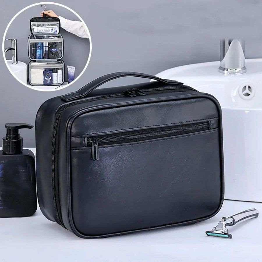 - Trousse de toilette homme avec crochet intégré pour une suspension pratique
