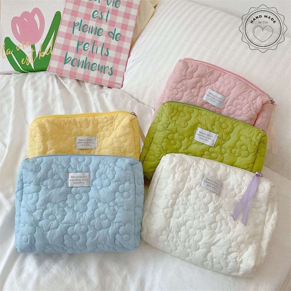 - Design Matelassé en Forme de Fleur : Son motif matelassé coloré et original apporte une touche de fraîcheur à votre trousse de toilette.