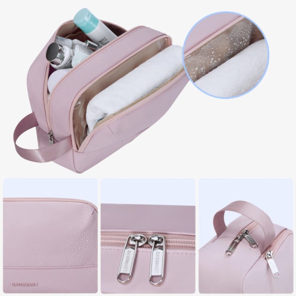 Cette trousse est conçue pour maximiser l’espace tout en maintenant vos affaires organisées. Ses compartiments intérieurs multiples vous permettent de ranger aisément tous vos produits de toilette et accessoires, assurant que tout reste en place pendant vos déplacements.