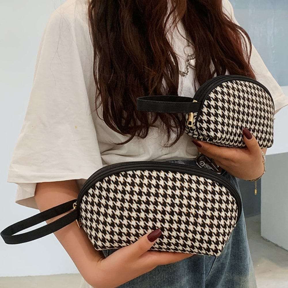 - Design Tendance Pied de Poule : Cette trousse affiche un design moderne et chic pour vous permettre de vous démarquer avec style.