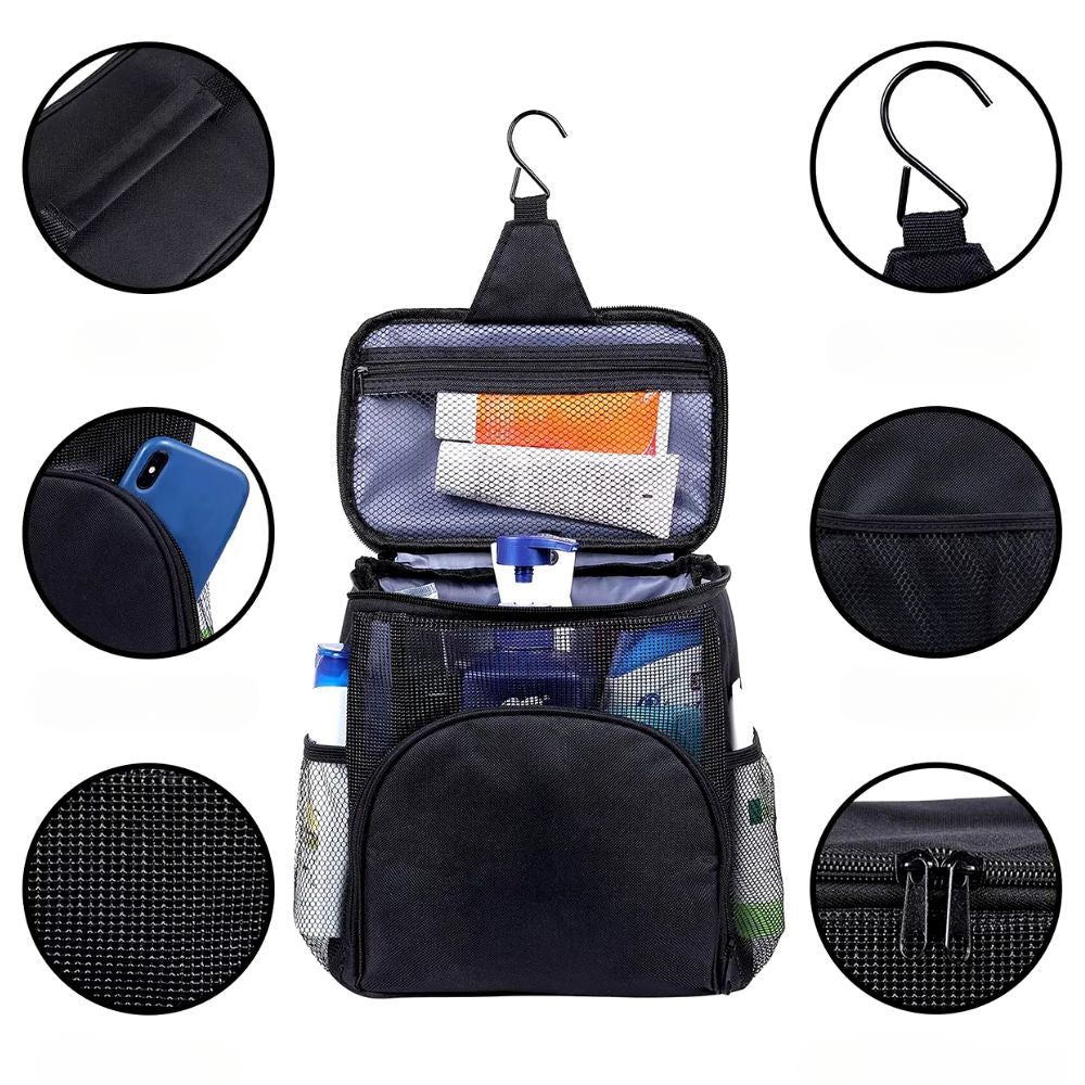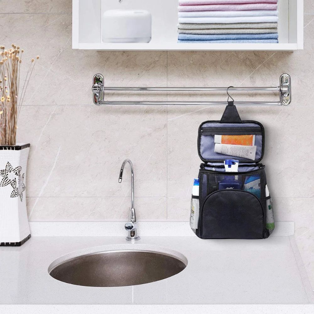 Le grand crochet en métal de notre vanity facilite l’accrochage dans les salles de bain, vous assurant une visibilité optimale de tous vos produits de beauté et soins personnels. Que ce soit pour un court séjour ou un long voyage, sa conception compacte et efficace garantit un gain de temps notable chaque matin.