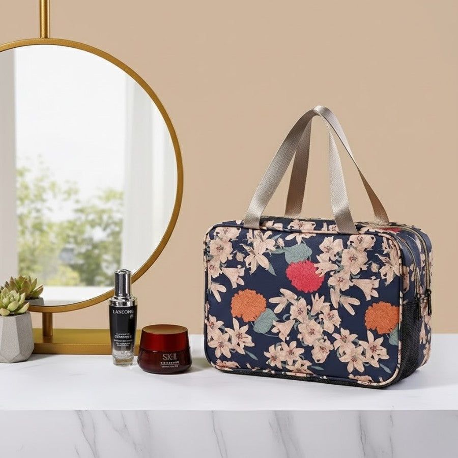 Imaginez voyager sereinement : vous ouvrez votre trousse de toilette fleurie et trouvez instantanément l’essentiel pour votre routine beauté, que ce soit à l’hôtel ou chez vous. Cette trousse bien ordonnée contribue à rendre vos moments de soin plus agréables et pratiques.