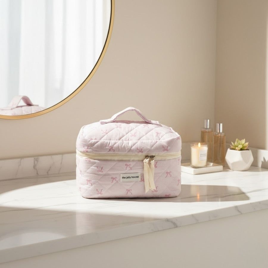 Élégant et pratique, le Vanity Rose Pâle combine charme féminin et fonctionnalité. Son format compact et sa structure matelassée gardent vos essentiels de beauté bien organisés, que ce soit en voyage ou à la maison.